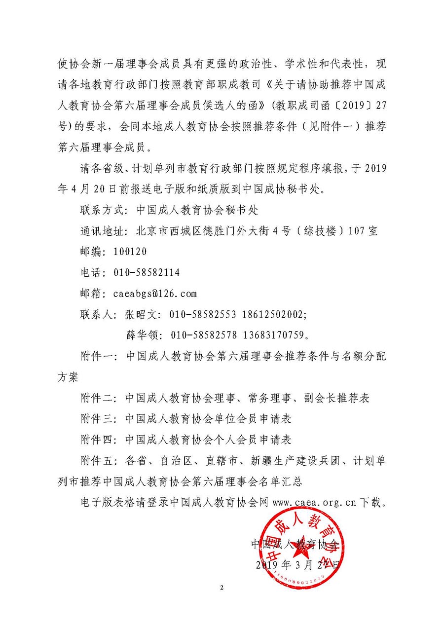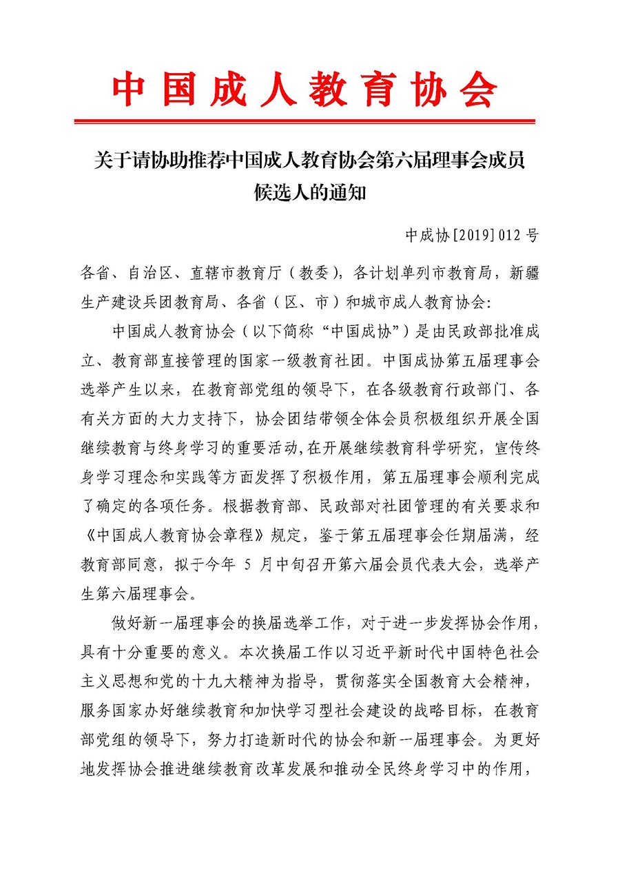 關于請協(xié)助推薦中國成人教育協(xié)會第六屆理事會成員候選人的通知