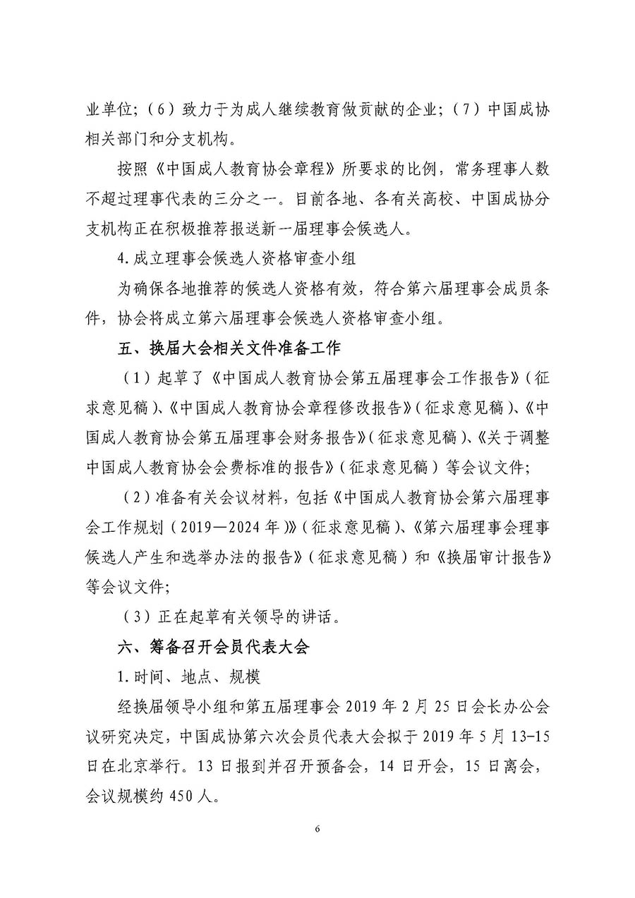 關(guān)于召開中國成人教育協(xié)會第五屆理事會議(通訊)征求換屆工作方案意見的通知