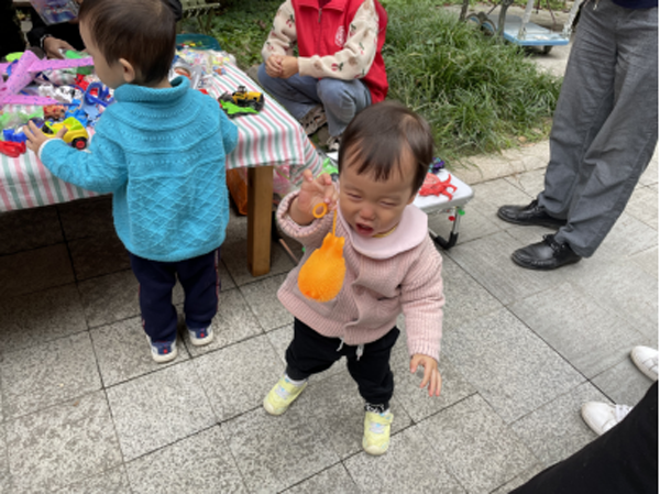 活動(dòng)中庭廣場(chǎng)上,分布著健康服務(wù)區(qū)、愛心義賣區(qū)、低幼齡兒童游樂(lè)區(qū)、磨刀區(qū)。愛心義賣區(qū)里的商品豐富,玩具、幼兒圖書、學(xué)習(xí)用品、手工制作等琳瑯滿目。小朋友坐在自己攤位前,扮演起老板的角色,熱情地向往來(lái)的顧客推銷自己的商品,使出渾身解數(shù)招攬生意。當(dāng)拿到自己辛辛苦苦賣東西掙來(lái)的錢之后開心極了。有的小朋友因?yàn)椤吧狻辈缓靡矔?huì)失落,跟媽媽訴苦:“媽媽,掙錢實(shí)在是太不容易了,我以后一定要學(xué)會(huì)節(jié)約,不會(huì)再亂花錢了?!甭犚晃患议L(zhǎng)說(shuō)孩子對(duì)義賣來(lái)的錢格外珍惜,基本上都會(huì)存起來(lái)舍不得花,義賣活動(dòng)不僅讓孩子們體驗(yàn)到了實(shí)踐活動(dòng)的樂(lè)趣,也讓他們了解到了賺錢的不易。