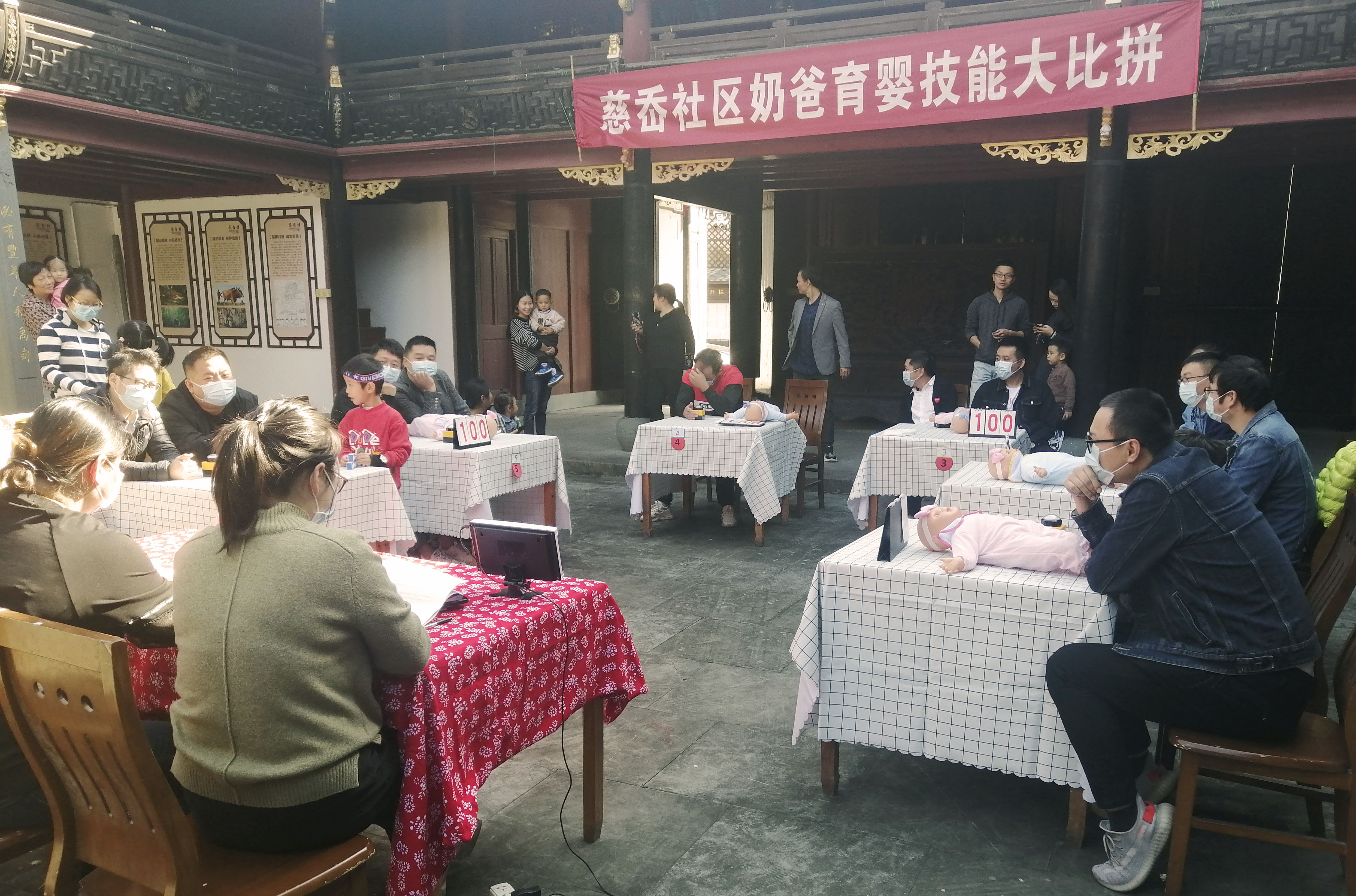 浙江寧波:“奶爸”育嬰技能PK賽在北侖區(qū)春曉街道慈岙社區(qū)文化禮堂舉行 -