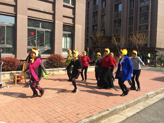 活動(dòng)開始,社區(qū)教育志愿者鄭老師帶領(lǐng)大家進(jìn)行了開場破冰游戲,通過自我介紹的方式讓大家互相認(rèn)識(shí)了解,氣氛一下被帶動(dòng)了起來。接著社區(qū)婦女主任盛主任又為大家普及倡導(dǎo)了社區(qū)的十項(xiàng)文明規(guī)范,得到了老人們的支持和響應(yīng)。緊接著,豐富多彩的文藝演出更是受到了老人們的喜愛,有些戲曲、歌曲愛好者更是躍躍欲試,主動(dòng)要求上臺(tái)表演,臺(tái)上臺(tái)下互動(dòng)熱烈,掌聲不斷?;顒?dòng)最后的 “小雞”舞曲,在表演者的帶動(dòng)下,現(xiàn)場氣氛達(dá)到高潮。隨著動(dòng)感的旋律,好多觀看演出的老年朋友都按捺不住,主動(dòng)一起加入進(jìn)來,整個(gè)社區(qū)一片歡聲笑語。