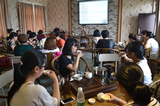 在告知學(xué)員們泡茶的三個(gè)決定性因素是水溫、投茶量、水的停留時(shí)間之后,鄭老師便帶著大家按照步驟體驗(yàn)了泡茶、品茶。老師用課件中精致的畫(huà)面、細(xì)致的步驟羅列,以及自己舉手投足間的優(yōu)雅寧?kù)o,詮釋了茶道崇尚自然,對(duì)美的不懈追求。