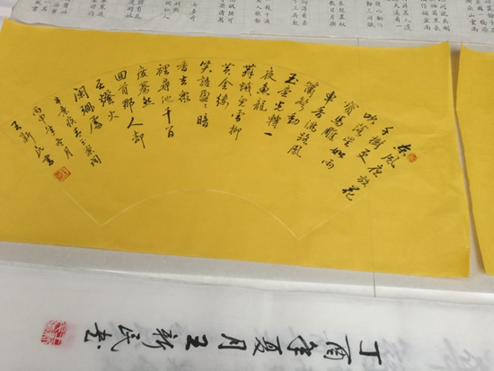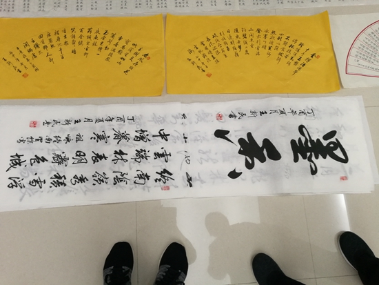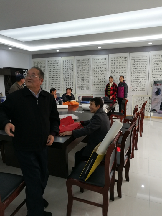 10月23日,一群書法愛好者來到龍虎塘街道社區(qū)教育中心,舉行了一場丹青筆墨會。他們紛紛帶來了自己新近的書法作品,以墨會友,相互交流,相互學習。