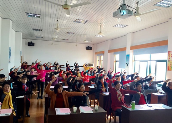 為貫徹社區(qū)教育“為民、惠民、利民、樂民”的根本宗旨,實現(xiàn)縣市級社區(qū)學院與鄉(xiāng)鎮(zhèn)級社區(qū)教育中心教育資源的融通共享,并進一步提升社區(qū)教育的服務功能,豐富全市各鄉(xiāng)鎮(zhèn)社區(qū)居民的業(yè)余文體生活,余姚市社區(qū)學院在2016年成功舉辦第一次送經絡健身操下鄉(xiāng)系列活動。今年10月至12月期間繼續(xù)開展了2017送經絡健身操下鄉(xiāng)公益講座系列活動。此次送教的經絡健身操包括:經絡手指操、經絡拍手操和疏經活絡操。由于動作簡單、易學,而健身效果又十分顯著,一經推出就收到了15個鄉(xiāng)鎮(zhèn)成校的自主報名,培訓人數(shù)進一步突破去年,創(chuàng)下694人的新高。培訓的學員極為廣泛,涵蓋了鄉(xiāng)村留守老人、社區(qū)和村落的文體愛好者、村干部、退休教師等對養(yǎng)生、健身有需要的人群,年齡跨度從26歲到85歲。學員們普遍對這種送到“家門口”的培訓反響良好。在講師團老師生動詳細的教學ppt演示及手把手現(xiàn)場教學的引領下,教學現(xiàn)場氣氛愉快而活躍。培訓結束后,老師們還為各個鄉(xiāng)鎮(zhèn)的學員們創(chuàng)建了微信群,并把一些教學課件與跳操的教學視頻發(fā)到群上與學員們共享,以便進一步鞏固教學效果,方便老師與學員及學員與學員間的交流學習,從而讓今年送教的這套經絡健身操更快、更好地向鄉(xiāng)鎮(zhèn)一級的不同年齡層次的群眾推廣。