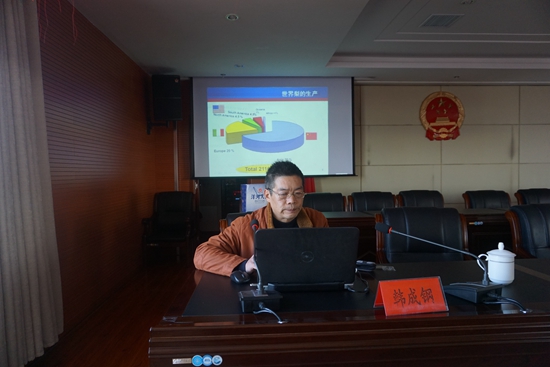 培訓(xùn)班上,韓成鋼同志利用多媒體、圖片、視頻資料相結(jié)合的形式,針對(duì)我鎮(zhèn)環(huán)境特點(diǎn),結(jié)合種植戶在實(shí)際生產(chǎn)中遇到的難題,從育苗(無(wú)病毒苗木培育、容器育苗)、建園(園地規(guī)劃設(shè)計(jì)、苗木種植)、土肥水管理、樹體管理(整形修剪)、花果管理(?;ū9c疏花疏果、果實(shí)采收)等方面詳細(xì)分析了果樹栽培需要注意的問(wèn)題,介紹了各種果樹病蟲害癥狀、防治方法和農(nóng)藥的選擇。他還聯(lián)系我市果樹種植現(xiàn)狀、果品經(jīng)營(yíng)形勢(shì),介紹了國(guó)際、國(guó)內(nèi)果品發(fā)展趨勢(shì),梨、桃、葡萄等新技術(shù)新品種、相關(guān)操作規(guī)程及技術(shù)標(biāo)準(zhǔn)。他認(rèn)為,要按照國(guó)家有關(guān)梨標(biāo)準(zhǔn)建設(shè)形成能夠?qū)崿F(xiàn)生產(chǎn)標(biāo)準(zhǔn)化、管理集約化、產(chǎn)品優(yōu)質(zhì)化、經(jīng)營(yíng)產(chǎn)業(yè)化、銷售品牌化、效益最大化的果園,提升新技術(shù)、新品種在我鎮(zhèn)林果業(yè)中的應(yīng)用,進(jìn)一步推動(dòng)農(nóng)業(yè)種植布局調(diào)整。
