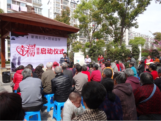 啟動儀式上,大新鎮(zhèn)新南社區(qū)和張家港市明城國學(xué)負責(zé)人,分別在該項目的子項目“幸福相伴”項目實施合作書上簽了字。該子項目計劃每月一次,以老年人為主體,由張家港市明城國學(xué)負責(zé)邀請專家老師,通過傳統(tǒng)國學(xué)讓老人掌握養(yǎng)心、養(yǎng)氣、養(yǎng)生及保健方法,使社區(qū)老人們的家庭更和睦,生活更幸福,身體更健康,每月通過小區(qū)四塊電子屏、樓道口櫥窗、小區(qū)廣播發(fā)布上課時間地點。