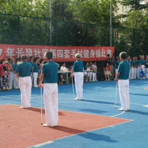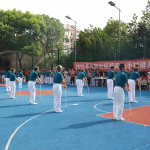 2017年7月10日長風(fēng)社區(qū)第四套手杖健身操比賽在社區(qū)學(xué)?;@球場舉行,全面展示了長風(fēng)社區(qū)全民健身的最新成果。本次賽事共有17支隊(duì)伍,160余名隊(duì)員參加,體現(xiàn)了社區(qū)中老年朋友對這一項(xiàng)目的喜愛,掀起了以“體育生活化、健身科學(xué)化”為目標(biāo)的全民健身運(yùn)動的新高潮。