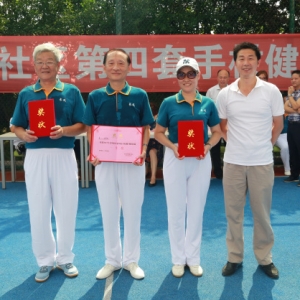 今天的比賽,烈日當(dāng)空,卻是充滿著緊張熱烈、融融和諧的氛圍。統(tǒng)一的著裝、一根手杖玩得眼花繚亂,第一支隊(duì)伍一亮相就贏得了滿堂喝彩。其余隊(duì)伍陸續(xù)登場,競相角逐,比出了水平、賽出了風(fēng)格、增進(jìn)了友誼,體現(xiàn)了長風(fēng)社區(qū)中第四套手杖健身操本著“你動我也動”的向望,每節(jié)動作,手持手杖模仿各種運(yùn)動項(xiàng)目內(nèi)容,雖然只能似像非像,可是能達(dá)到心理的滿足,并具有趣味性和觀賞性。老年朋友的健康風(fēng)貌。最后,比賽評選出一等獎3家、二等獎6家和三等獎8家。