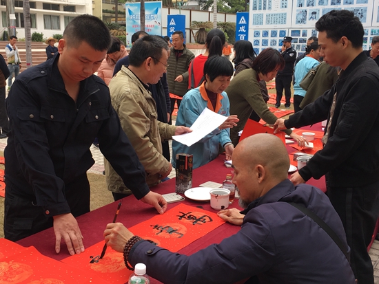 同時,記者在城市學院了解到,為積極響應區(qū)委區(qū)政府建設“共享家園”號召,在全社會營造歡樂、祥和、濃郁的春節(jié)氛圍,進一步弘揚優(yōu)秀傳統(tǒng)文化,寶安城市學院在當天上午還舉行了“共享家園齊打造,新春萬福送您家”春聯(lián)義寫贈送活動,提前為周邊社區(qū)居民送上溫暖的新年祝福,吸引了絡繹不絕的群眾前來咨詢、領取春聯(lián)。(作者:寶安職業(yè)訓練局 吳坤曄 曾志遠)
