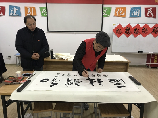 現場將軍、書法家和社區(qū)書法愛好者們揮筆灑墨,在鮮紅的紙上寫下一幅幅蒼勁有力的福字。呂振林將軍和歐錦鉞書畫家分別為社區(qū)題寫了“和諧社區(qū)”、“最美志愿社區(qū)”。居民們拿到滿載祝愿的福字個個喜笑顏開,表示春節(jié)的時候一定要把這火紅的福字貼在家門口,希望新的一年能夠平平安安、健健康康。