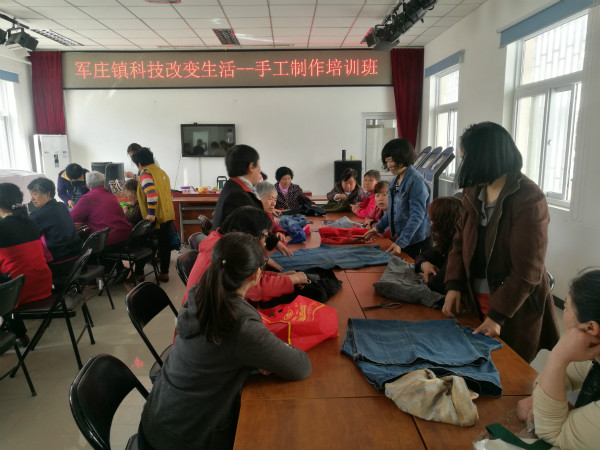 近些年,隨著人們?nèi)粘I钏降牟粩嗵岣?,穿著的衣物更新頻率也在加快。每戶人家中都會存有一定數(shù)量的棄之可惜,置存占地的舊衣物。怎樣處理這些不斷疊加的舊衣物,是大眾家庭普遍存在的難題。為了幫助大家解除困擾,社區(qū)學(xué)院在軍莊鎮(zhèn)楊坨社區(qū)組織開展了這次將舊衣物改造成時尚挎包、舒適靠枕等居家裝飾用品技能培訓(xùn)。