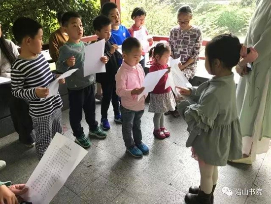 今天是4月23日世界讀書(shū)日。古墩社區(qū)沿山書(shū)院第一期公益國(guó)學(xué)讀經(jīng)課堂也選擇在今天上午正式開(kāi)課。在沿山河畔的“讀經(jīng)亭”花盛葉茂,漸起徐風(fēng),報(bào)名的小朋友們?cè)跁?shū)院程姣老師的帶領(lǐng)下一起誦讀經(jīng)典《千字文》,與陪同的家長(zhǎng)共同體驗(yàn)了一次傳統(tǒng)文化親子互動(dòng)。