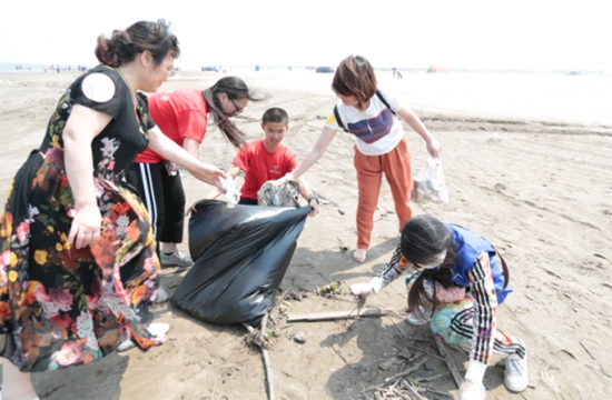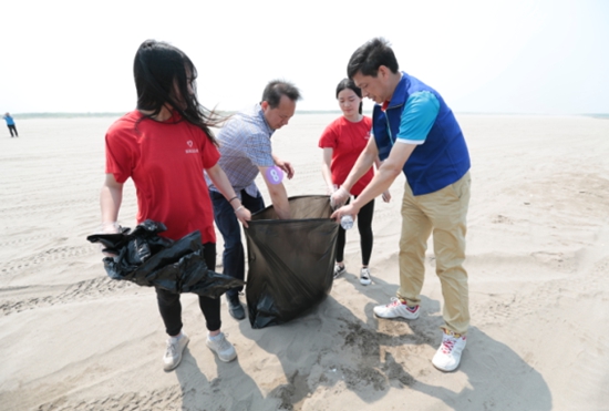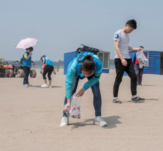 離開福利院后,師生志愿者們一行驅(qū)車來到君山銀沙灘開展關(guān)愛自然——保護(hù)生態(tài)自然環(huán)境清潔沙灘活動(dòng)。烈日下,大風(fēng)卷起的沙塵,絲毫沒有讓志愿者們退縮。有的單獨(dú)行動(dòng),有的分工協(xié)作,在長達(dá)1個(gè)多小時(shí)里的清潔行動(dòng)中,志愿者們在主沙灘上收集了滿滿的六大袋垃圾。