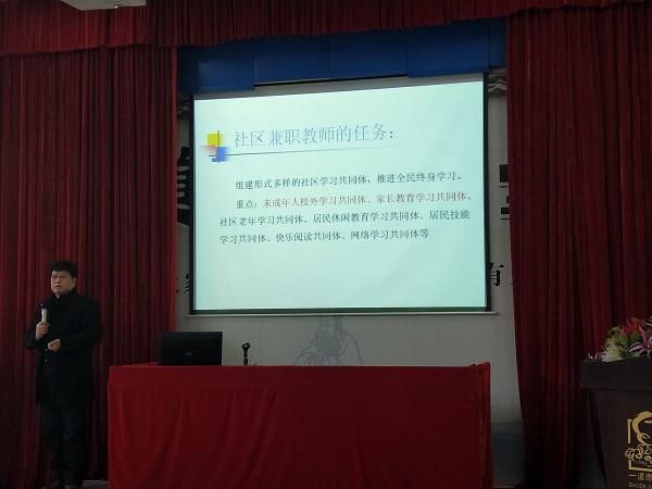 首先,蘆淞區(qū)社區(qū)學(xué)院主任楊立新對社區(qū)兼職教師進行了業(yè)務(wù)培訓(xùn)。他從三個方面作了具體的闡述:一是正確認識社區(qū)教育(是什么);二是社區(qū)教育的主要任務(wù)(干什么);三是如何推動社區(qū)教育發(fā)展(怎么干)。楊主任指出,社區(qū)兼職教師的任務(wù)就是組建社區(qū)學(xué)習(xí)共同體,推進全民終身學(xué)習(xí)。組建社區(qū)學(xué)習(xí)共同體也是工作的重點,包括組建未成年人校外學(xué)習(xí)共同體、家長教育學(xué)習(xí)共同體、社區(qū)老年學(xué)習(xí)共同體等。楊主任深入淺出的講解,讓大家了解了蘆淞區(qū)社區(qū)教育的現(xiàn)狀以及取得的成績,對社區(qū)教育的新模式---學(xué)習(xí)共同體也有了一定的認知,充分感受到了社區(qū)兼職教師工作的特殊性與意義所在。