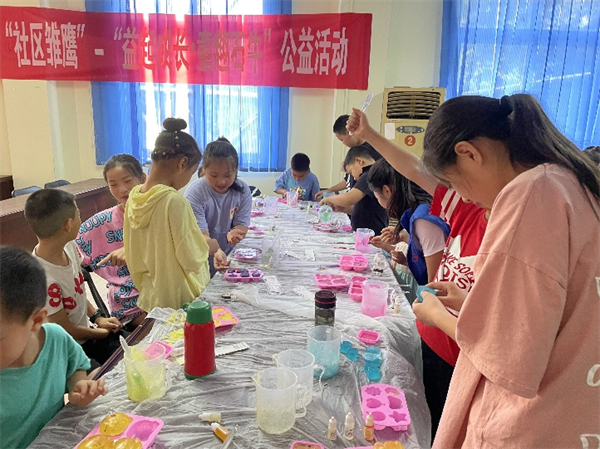 為了發(fā)揮社區(qū)教育服務(wù)青少年校外教育的作用,豐富轄區(qū)孩子們的暑期生活,培養(yǎng)孩子們的動手能力,石牛村社區(qū)教育工作站聯(lián)合溫江區(qū)鴻杰社會工作服務(wù)中心(簡稱鴻杰中心),于7月21日,在石牛村黨群服務(wù)中心多功能室開展了第六期“社區(qū)雛鷹”暑期公益活動——“益起成長·童趣石?!笔止は阍碇谱骰顒?,來自全村各組的10余名小朋友參加活動。