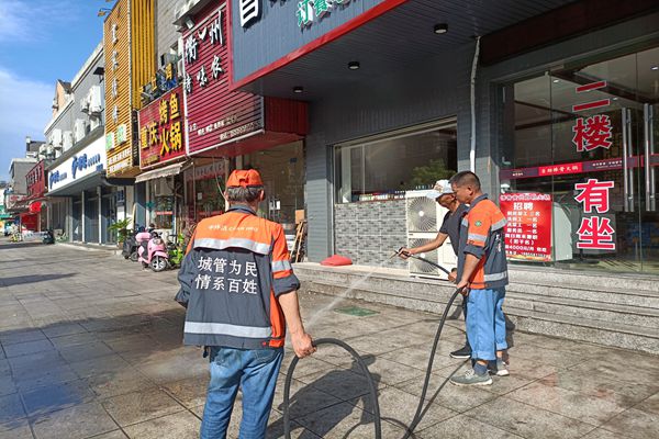 大碶街道高田王街兩側(cè)由于餐館較多,加上一些商戶衛(wèi)生意識薄弱,路面臟污現(xiàn)象較嚴重。前段時間,高田王社區(qū)將這一現(xiàn)象報告上級部門,請求清洗路面。9月9日-10日,大碶街道多部門聯(lián)動,決定對高田王街重油污的人行道和主干道進行換臉式清潔。中午12點,烈日當空,在大碶交警中隊的支持下,交警們對高田王街東側(cè)進行交通管制,并對該路段逐輛進行通知移車。接著,環(huán)衛(wèi)工人跟進路面清洗,有的蹲著撒洗衣粉,有的拎水桶,有的拿掃帚掃,將路面的油污刷洗后,再用高壓水槍噴水,將路面沖洗一遍。工人們個個忙得熱火朝天,汗流浹背。