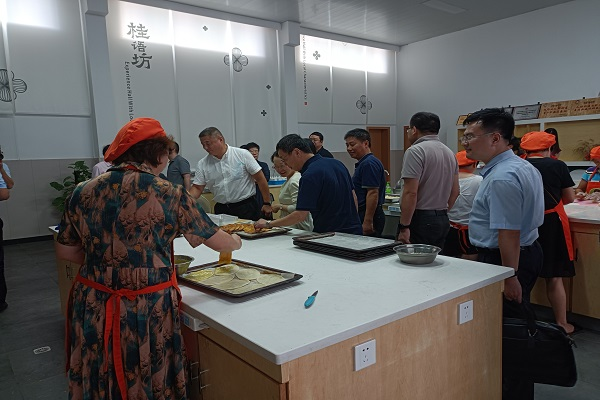 調(diào)研組專家首先參觀了桂語(yǔ)坊內(nèi)的手工制作環(huán)境,坊內(nèi)干凈整潔,物品擺放有序;“塔峙大阿嫂”們有條不紊地工作著,為專家們展示了鞋底餅、灰汁團(tuán)等寧波傳統(tǒng)糕點(diǎn)的制作工藝,并獲得了一致好評(píng)。之后董春燕向到來(lái)的調(diào)研工作者表示歡迎和感謝,并對(duì)桂語(yǔ)坊和大阿嫂公益社會(huì)組織進(jìn)行了詳細(xì)介紹。調(diào)研組對(duì)桂語(yǔ)坊的公益活動(dòng)給予了充分肯定,并提出了建議。尤其是對(duì)基地打造鄉(xiāng)村旅游、搭建田間學(xué)校、精準(zhǔn)扶貧等措施上給予支持,對(duì)基地實(shí)實(shí)在在幫助當(dāng)?shù)剞r(nóng)戶增加收入,幫助貧困戶努力精準(zhǔn)脫貧表示贊賞。