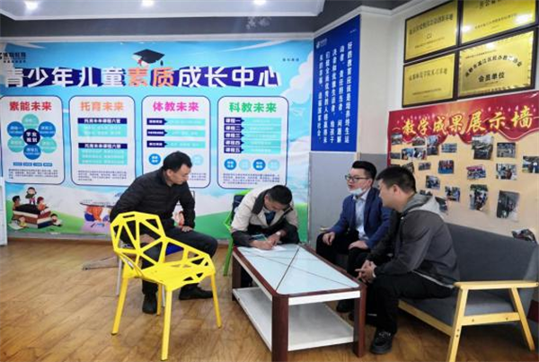 隨著“雙減”工作的持續(xù)開(kāi)展,江安社區(qū)教育工作站認(rèn)真部署、嚴(yán)格落實(shí)區(qū)“雙減”各項(xiàng)政策、任務(wù)要求,多管齊下,積極推動(dòng)轄區(qū)內(nèi)校外培訓(xùn)機(jī)構(gòu)的“雙減”工作。10月13日下午,江安社區(qū)教育工作站聯(lián)動(dòng)區(qū)人社局監(jiān)察大隊(duì)、公平街道勞動(dòng)保障所對(duì)社區(qū)教育工作開(kāi)展情況進(jìn)行走訪摸排。本次摸排行動(dòng)主要針對(duì)轄區(qū)內(nèi)的培訓(xùn)教育機(jī)構(gòu)開(kāi)展,在摸排過(guò)程中就是否存在運(yùn)營(yíng)風(fēng)險(xiǎn)、家長(zhǎng)退費(fèi)、員工欠薪、欠租金、社保購(gòu)買情況等問(wèn)題,對(duì)轄區(qū)教育機(jī)構(gòu)經(jīng)營(yíng)風(fēng)險(xiǎn)進(jìn)行了大排查,并對(duì)各機(jī)構(gòu)負(fù)責(zé)人做了“雙減”政策的宣傳講解。