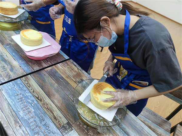 劉林馨老師還一邊講解蛋糕的制作方法,一邊組織大家進(jìn)行現(xiàn)場操作。大家全程聚精會(huì)神的傾聽觀看、積極提問,并且認(rèn)真的參與到制作過程當(dāng)中?,F(xiàn)場氣氛溫馨融洽,大家邊制作邊閑談,還交流起日常生活和工作中的苦惱與快樂,互相支持與鼓勵(lì)。經(jīng)過近一個(gè)小時(shí)的制作后,一份份承載著愜意與幸福的甜品新鮮出爐,香飄四溢,讓人垂涎欲滴,絲毫不亞于甜品店里的美味。