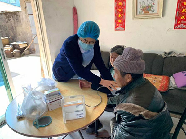 該中心護理部負(fù)責(zé)人汪雪丹護士長檢查完袁阿婆的壓瘡和褥瘡情況,隨后又為王大爺量起了血壓。自新冠肺炎疫情發(fā)生以來,為了減少王大爺來往醫(yī)院的配藥次數(shù),降低交叉感染風(fēng)險,沈勇醫(yī)生和汪雪丹護士長每次來也會為王大爺進行測壓等常規(guī)檢查,并將慢性病用藥配齊給他們一起帶去。臨出門,沈勇醫(yī)生又細心的提醒兩位老人:“大爺、阿婆,平時家里多通風(fēng),這個新冠肺炎病毒很狡猾的,如果一定要出門的話必須要戴好口罩。多注意休息,有事情給我們聯(lián)系打電話。”
