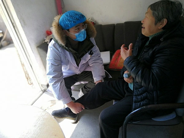 “阿婆,剛測了下,你的心率和血壓都在正常范圍的。藥呢還是按照原來的方法吃,這幾種都要吃的,不要落下吃哦。” 1米80多個子的沈勇醫(yī)生一邊說著,一邊蹲下來,抬起袁阿婆的患肢手法嫻熟的按摩起來:“王大爺,平時你多幫阿婆按按這幾個地方,對她恢復(fù)有很大好處的。”