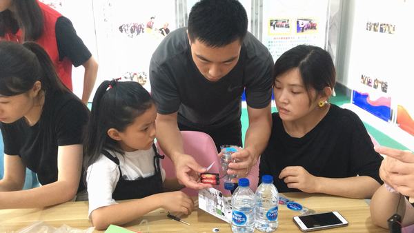 在“變廢為寶”手工制作中,孩子們在老師的帶領(lǐng)下制作“紙屑吸塵器”,老師先給孩子們進(jìn)行了示范,接著孩子們就迫不及待地嘗試起來,在一個(gè)礦泉水瓶上裝上一個(gè)小電機(jī)、一個(gè)小扇葉、二節(jié)電池,過程看似簡單,但操作過程中還是需要膽大心細(xì),經(jīng)過努力,一只只吸塵器終于誕生了,孩子們個(gè)個(gè)樂得眉飛色舞。