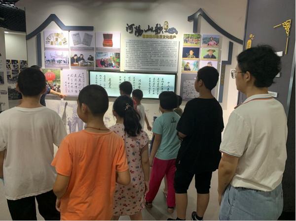 活動中,孩子們一起來到鳳凰文化中心的非遺館,在講解員肖國秋老師的帶領(lǐng)下,了解到了鳳凰本地的10項非遺項目,有大家熟知的河陽山歌、鳳凰廟會、高莊豆腐干、菊花酒,也有較為陌生的民間諺語、河陽烙畫、河陽寶鑒等,通過參觀學(xué)習(xí)加深了孩子們對鳳凰的了解,接著,孩子們觀看了鳳凰特色宣傳片,看到了家鄉(xiāng)許多優(yōu)美的風(fēng)景,豐富的特產(chǎn),換一個角度欣賞發(fā)現(xiàn)鳳凰的別樣美麗;隨后還觀看了河陽山歌視頻,了解到河陽山歌的來源和表現(xiàn)形式,并欣賞傳統(tǒng)河陽山歌,孩子們興趣盎然,樂在其中。