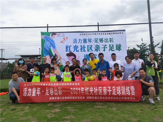 2021年5月上旬,紅光社區(qū)聯(lián)合成都市溫江區(qū)社區(qū)伙伴社會工作服務(wù)中心發(fā)布社區(qū)親子足球訓(xùn)練營招募令,通過線上線下宣傳,40余對親子家庭參與親子足球營訓(xùn)練計(jì)劃。