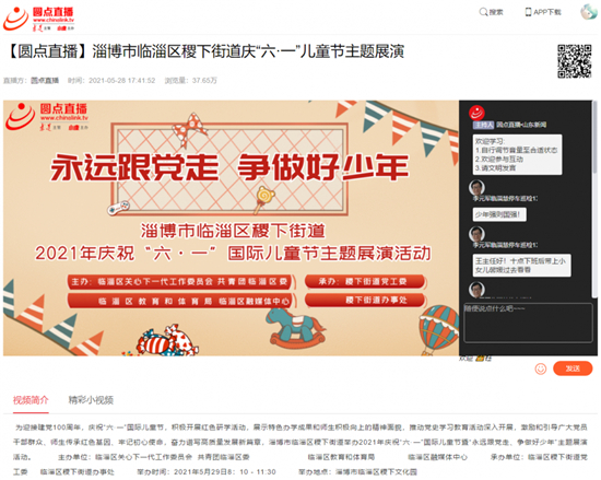 全媒直播,共慶六一?!秷A點直播·山東新聞》對活動進行了現(xiàn)場直播,在線觀看人數(shù)達38萬多人,產(chǎn)生了良好的社會反響。