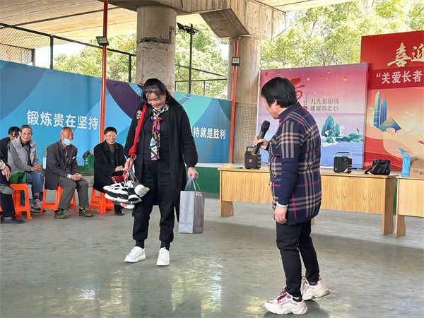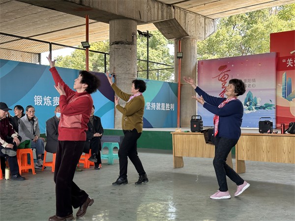 活動(dòng)開始,臺(tái)上的老人通過抽簽輪流進(jìn)行表演。一路歡歌一路舞,最美不過夕陽紅。老人們喝彩的不僅是歌舞,更是對(duì)精彩人生的歌贊。熟悉的旋律引起了在場(chǎng)老人們的共鳴,現(xiàn)場(chǎng)洋溢著溫暖的氣氛,有不少老人也跟著合唱起來。