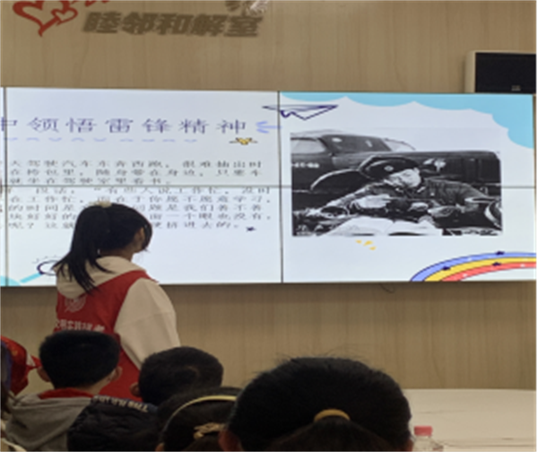活動邀請了轄區(qū)的15小學生,社工給大家講了雷鋒是誰,什么是雷鋒精神,讓大家認識雷鋒,了解雷鋒的生平事跡,告訴小朋友們雷鋒是一位關心別人、幫助別人、經常為別人做好事的解放軍叔叔,學習雷鋒助人為樂的光輝事跡,學習雷鋒遇到困難,不認輸、勇往直前的精神。學雷鋒要從身邊做起,從小事做起,以實際行動向雷鋒學習。接著,社工和大家一起學習了關于雷鋒的歌曲《學習雷鋒好榜樣》,在歌聲中學習,還講述了雷鋒留下的無數(shù)助人為樂、無私奉獻的小故事。