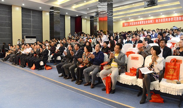 賈海明代表省教育廳作了題為“依法推進(jìn)全民終身學(xué)習(xí)活動(dòng)深入開(kāi)展”的講話。他從個(gè)人可持續(xù)發(fā)展的角度說(shuō)明了終身學(xué)習(xí)的重要性,從國(guó)家和民族發(fā)展的角度說(shuō)明了全民學(xué)習(xí)的必要性,從法律層面強(qiáng)調(diào)了政府以及各個(gè)職能部門責(zé)無(wú)旁貸、必須履行的責(zé)任,從具體的現(xiàn)實(shí)需要闡述了行業(yè)、企事業(yè)單位以及社會(huì)團(tuán)體義不容辭、必須承擔(dān)的任務(wù),深入解讀了《河北省終身教育促進(jìn)條例》,對(duì)如何落實(shí)《條例》、抓好工作提出了明確要求。他強(qiáng)調(diào),落實(shí)《河北省終身教育促進(jìn)條例》,各級(jí)政府要主動(dòng)作為,教育部門要首當(dāng)其沖,有關(guān)部門要各盡其責(zé),各類學(xué)校要盡其所能,社會(huì)各界要大力支持,新聞媒體要宣傳造勢(shì),將我省終身教育體系構(gòu)建和學(xué)習(xí)型社會(huì)建設(shè)納入法制化軌道。他要求,在2015年全省全民終身學(xué)習(xí)活動(dòng)周過(guò)程中,各參與市、縣、區(qū)要精心謀劃,認(rèn)真組織,順勢(shì)推動(dòng),切實(shí)抓好,把全民學(xué)習(xí)、終身學(xué)習(xí)的活動(dòng)扎扎實(shí)實(shí)地推向深入。