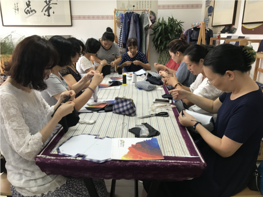 活動(dòng)當(dāng)天,在廊下鎮(zhèn)社區(qū)學(xué)校的廊下土布體驗(yàn)點(diǎn),來自全區(qū)不同地方的市民早早來到教室,體驗(yàn)自己動(dòng)手制作土布包,在專業(yè)老師的指導(dǎo)下,縫內(nèi)膽、安裝把的把手,一針一線中,一個(gè)造型獨(dú)特、復(fù)古時(shí)尚的土布包就完成了。在張堰鎮(zhèn)的創(chuàng)意女紅體驗(yàn)點(diǎn),不少小朋友也趁著暑假來體驗(yàn)創(chuàng)意盤花紐的制作,一件件精美的作品也吸引著社區(qū)居民和小朋友放下手機(jī)、電腦走進(jìn)這項(xiàng)傳統(tǒng)技藝。