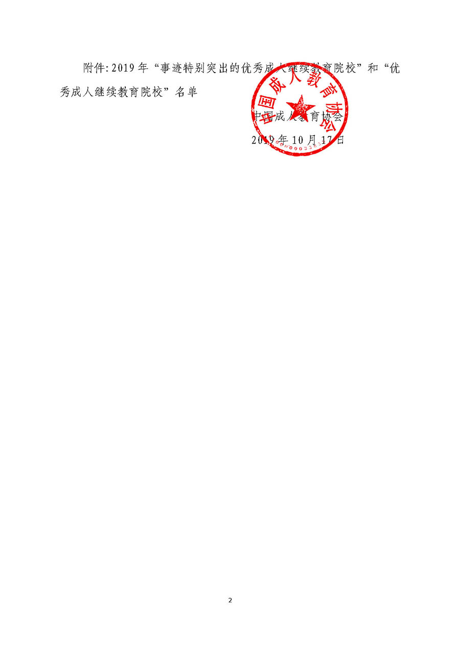 2019 年“優(yōu)秀成人繼續(xù)教育院?!泵麊?/strong>